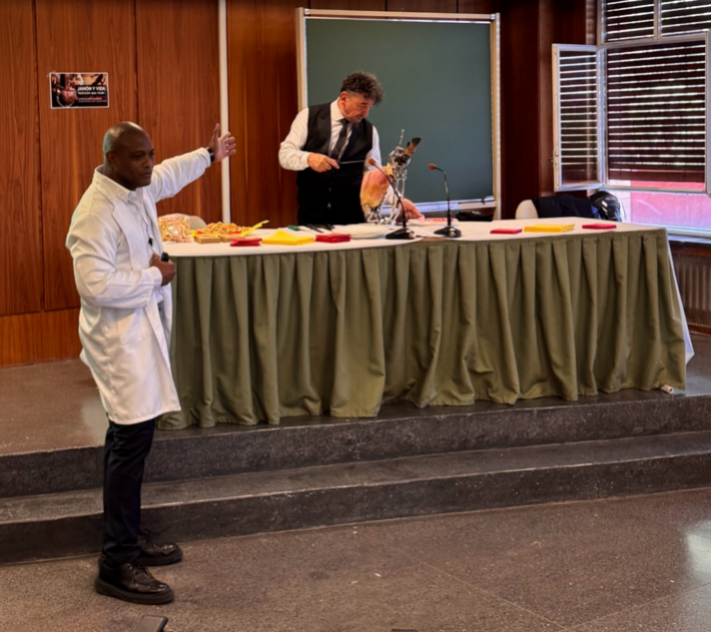 El mundialmente conocido maestro del jamón Florencio Sanchidrián y los doctores Luis Montel y Francisco Tovar disertaron en la Facultad de Medicina Deportiva de la Universidad Complutense de Madrid (UCM, España) sobre los beneficios del jamón ibérico en la práctica del deporte.