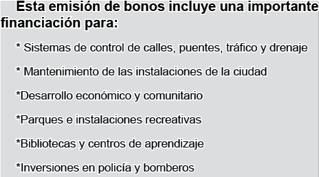 Respuesta: “ El Alcalde explico: “El paquete de bonos es para necesidades básicas e infraestructura crítica que toda comunidad necesita para estabilidad, crecimiento y seguridad. Está financiado por impuestos a la propiedad, mientras que los programas MAPS han sido financiados por un impuesto a las ventas aprobado por los votantes para financiar proyectos de calidad de vida e iniciativas de creación de empleo.